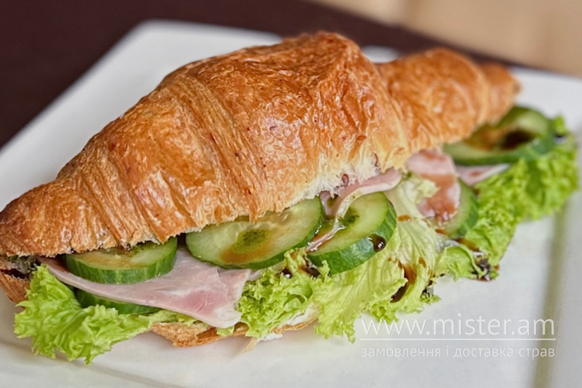 Шинка, огірок, базилік, крем-сир, листя салату.