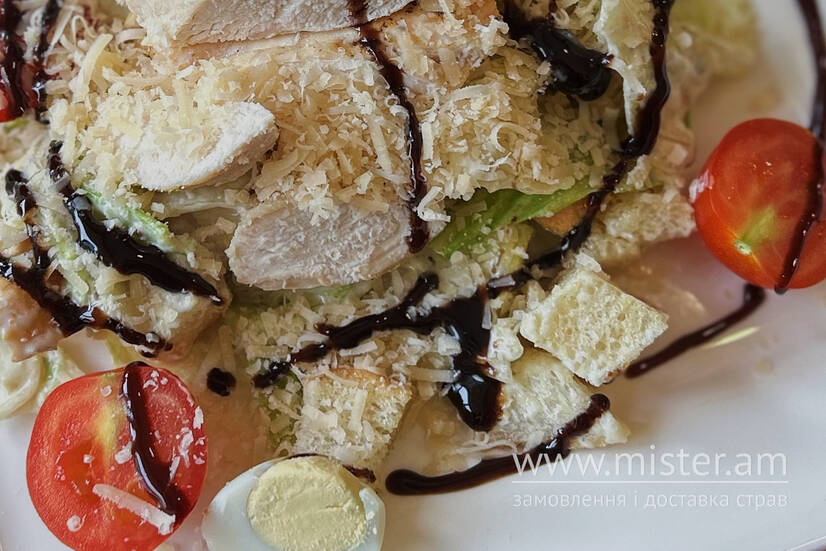 мікс салат, креветки, чері, авокадо, пармезан, лайм