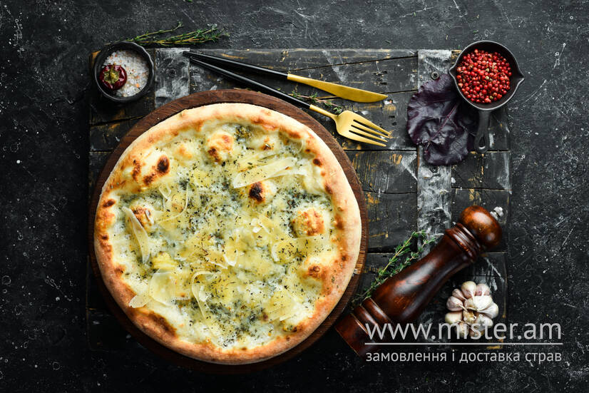 Моцарела, соус вершковий, лазур, пармезан, сир брі.