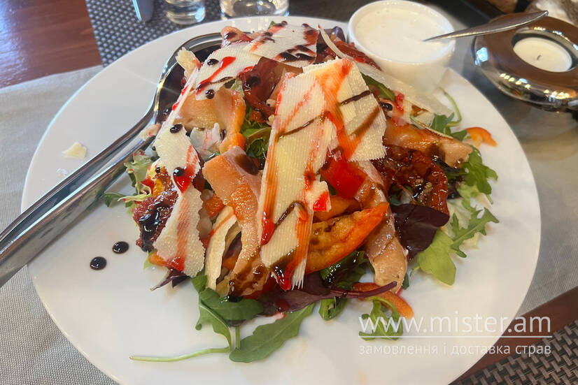Шахтарочка Мікс салату з лососем та сирним соусом