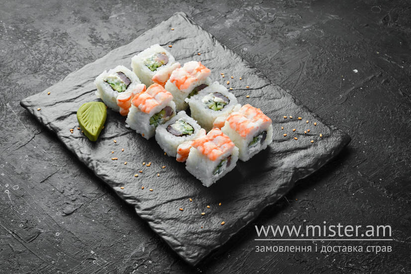 Норі, рис, крем-сир, огірок, тунець, креветка