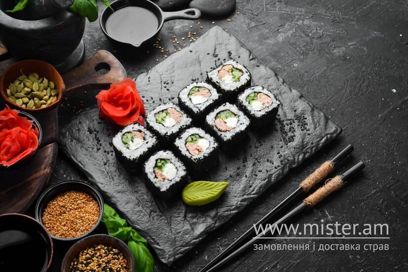 Норі, рис, сир Фета, огірок, консервований тунець, кунжут