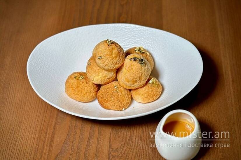 Міні шу з ніжною вершковою начинкою та карамельним соусом.