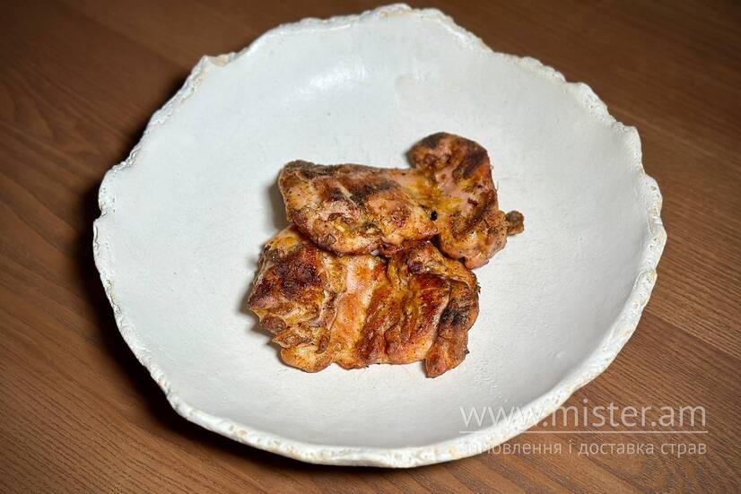 Куряче стегно, солодка паприка, тим`ян, сіль, перець.