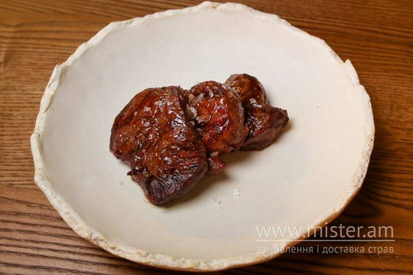 Страви Хоспер (з 12:00): Стейк Рібай, Стейк Нью-Йорк, Філе курки, Стейк свинний Чалагач, Пряне каре телятини, Пряне каре ягня з власної ферми, Форель річкова, Стейк витриманої форелі, Сібас на вуглях, Куряче стегно на вуглях, Свинина на вуглях, Ребро зі свинини на вуглях