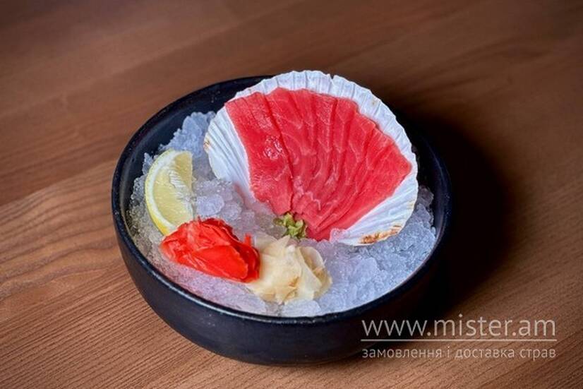Суші (з 12:00): Рол "Філадельфія" з лососем, Рол "Філадельфія" з креветкою, Рол "Філадельфія" з вугрем, Рол "Філадельфія" з тунцем, Рол "Каліфорнія" з лососем, Рол "Каліфорнія" з вугрем, Рол темпура з креветкою, Рол темпура з лососем, Рол темпура з вугрем, Рол "Каліфорнія" з креветкою, Сашимі з лососем, Сашимі з гребінцем, Сашимі з вугрем, Сет сашимі
