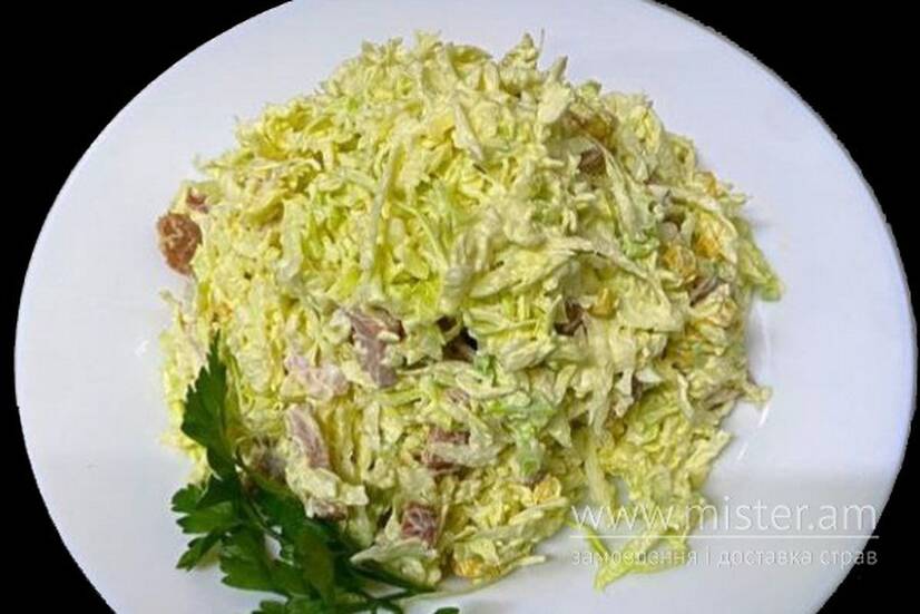 Капуста, шинка, кукурудза, майонез.