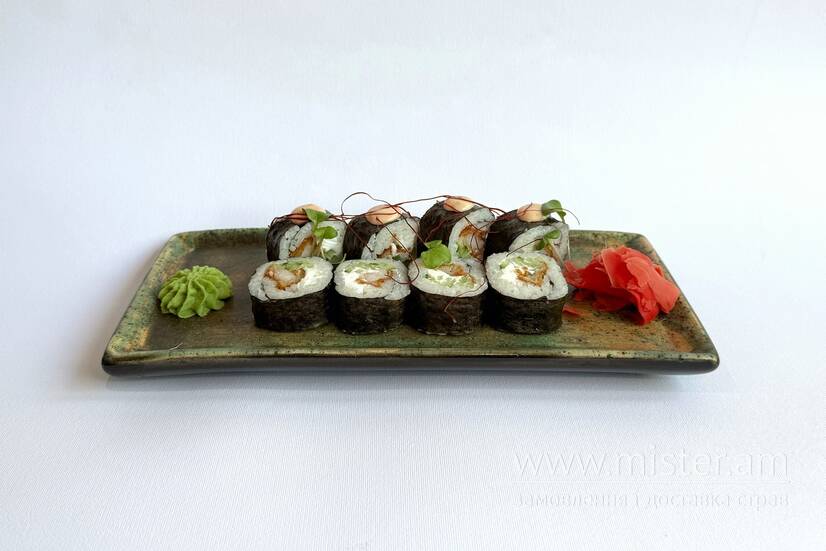 Норі, рис, креветка панко, огірок, крем-сир Філадельфія, кисло-солодкий майо.