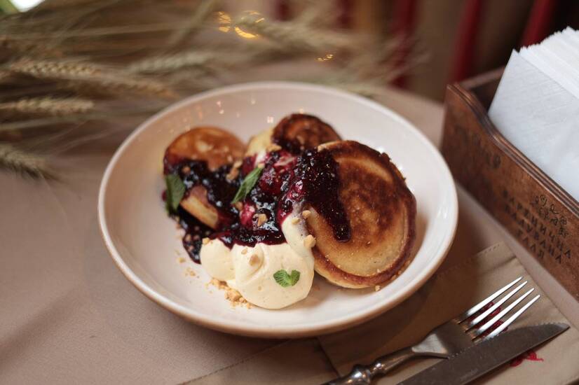 Пухкі оладки з ніжним вершковим кремом і джемом із чорної смородини NEW!