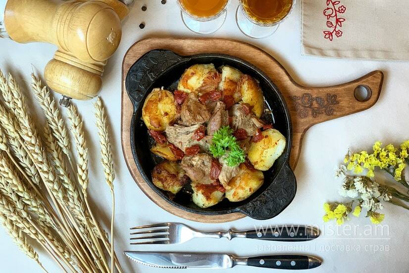 Томлене м`ясо індички з картоплею та в`яленими томатами