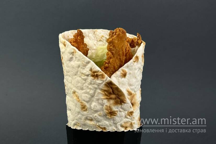 Загорнуті в тонкий лаваш шматочки курятини, свіжі помідори та хрумкий салат- латук – і все це заправлене пікантним гірчично-медовим соусом.