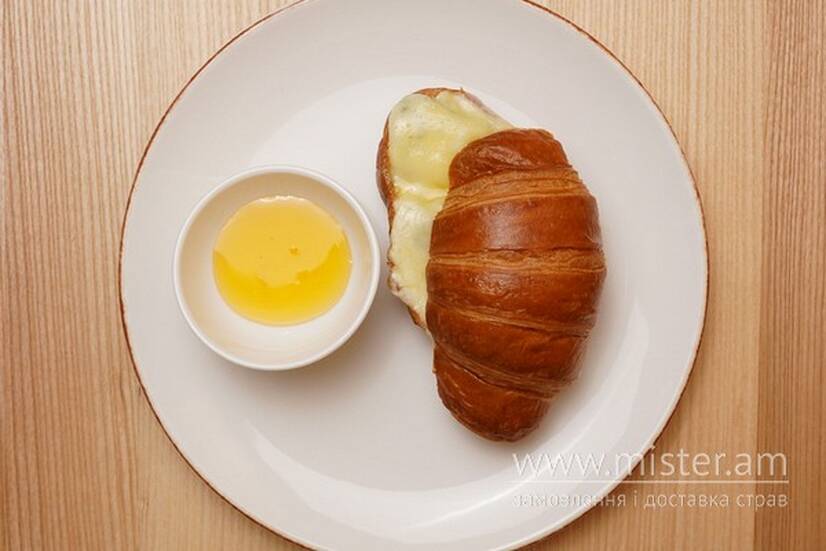 Круасан на маслі, крем-сир, сир дор блю, моцарела, мед.