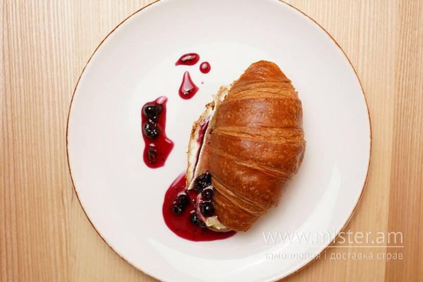 Круасан на маслі, крем-сир, сир брі, джем смородина.