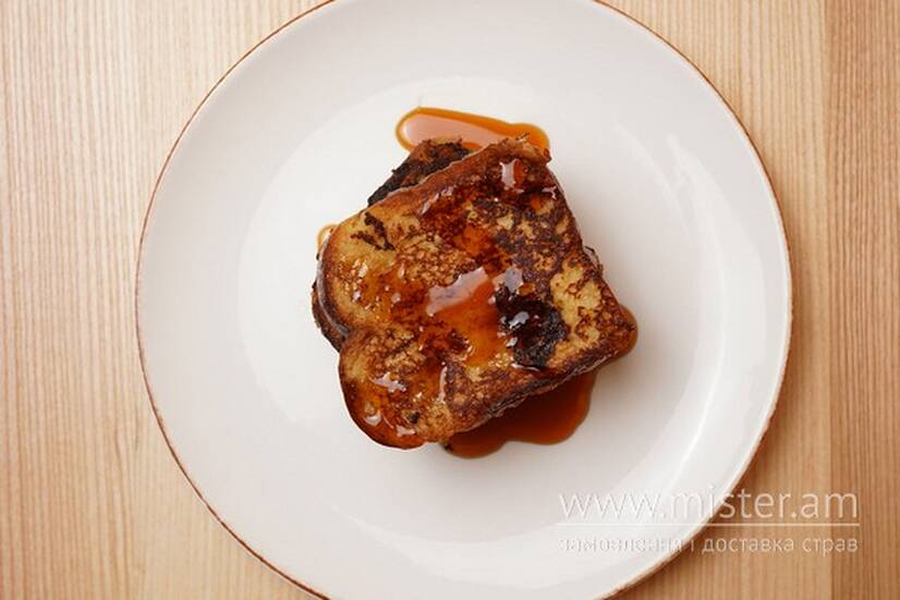 Булочка бріош, яйце, вершки, кленовий сироп.