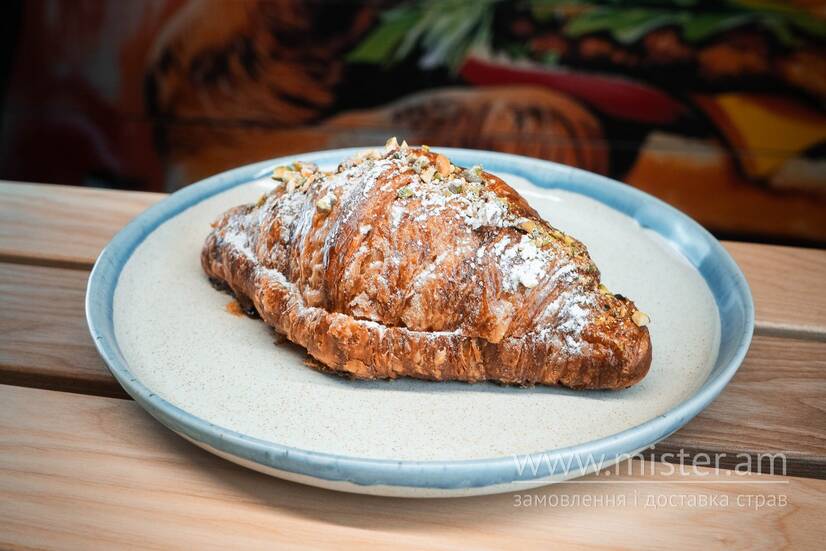 Хрусткий круасан із ніжним мигдалевим кремом, з додаванням 100% фісташкової пасти.