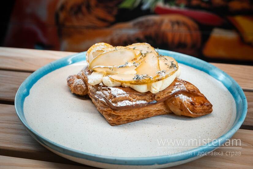 Соковитий даніш з ніжним ванільним ганашем та грушею у поєднанні з нотками чебрецю.