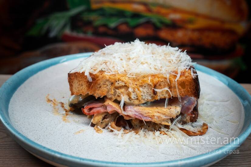 Крок месьє з полтавською шинкою та фірмовими огірочками