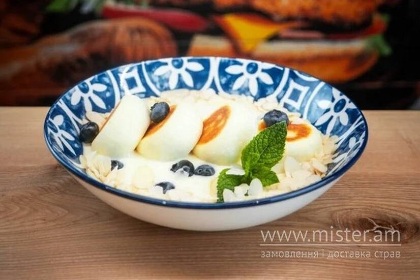 М`які, обсмажені сирники, подані з ніжним вершковим соусом та свіжими сезонними ягодами.