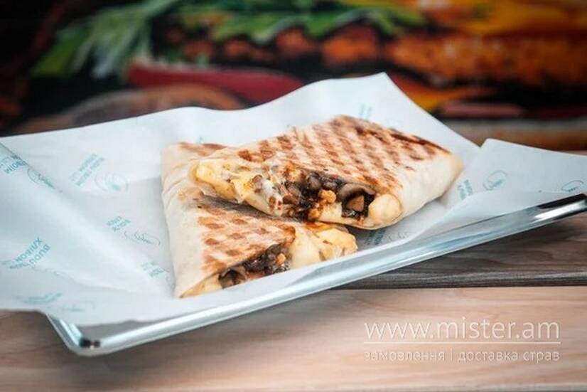 Піта, цибуля карамелізована, сир гауда, брі, дор блю, горіх волоський, гострий мед.
