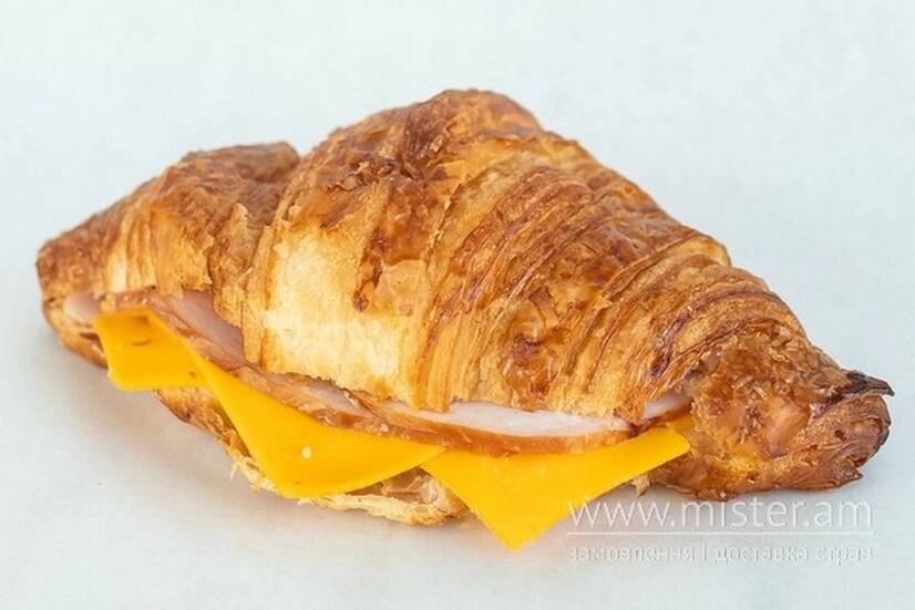 Хрумкий круасан з кунжутним соусом, шинкою та сиром Чеддер.