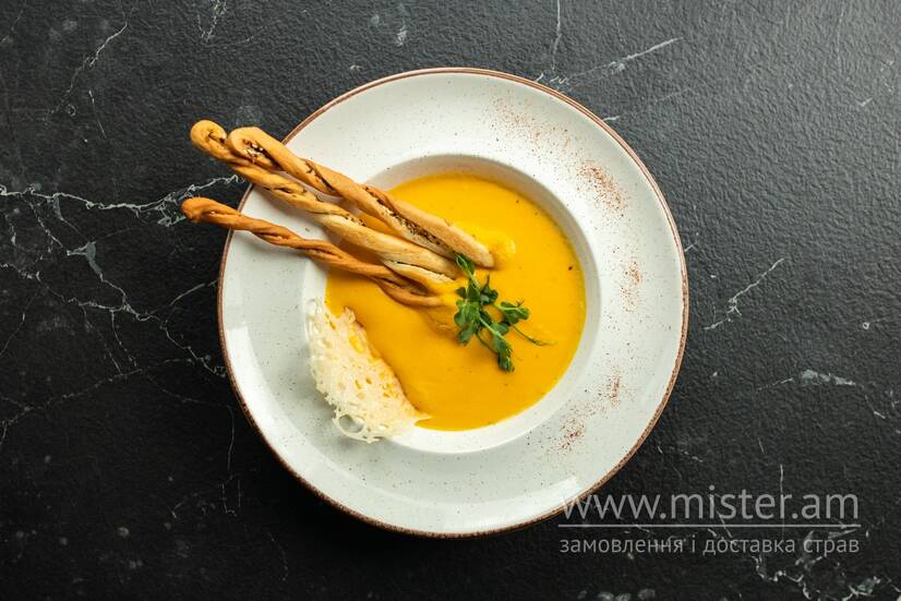 Крем-суп на основі вершків та сиру пармезан та сиру чеддер, з овочами.