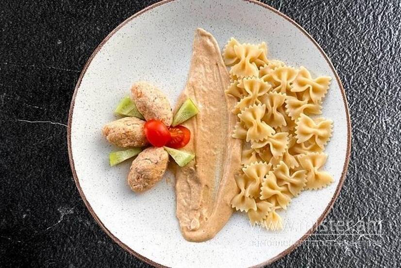 Дитячі макарони з котлетками на пару у вершковому соусі