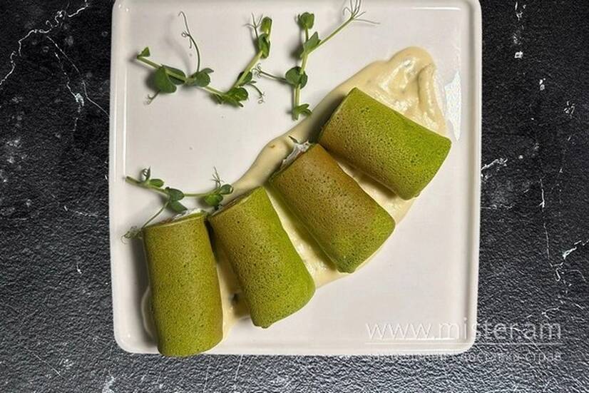 Яскраві зелені млинці зі шпинатом, ніжний слабосолений лосось і кремовий сир створюють ідеальне поєднання смаку. Легкі, витончені та корисні - чудовий вибір для гурманів та поціновувачів вишуканих страв.