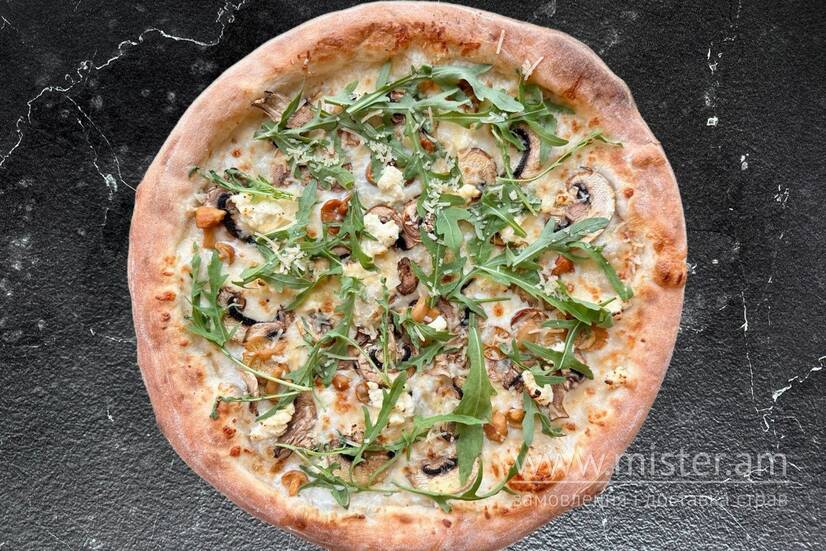 На основі вершків, з додаванням маринованих опеньок, печериць, руколи, крем-сиру Амерланду, сиру Моцарела, сиру Пармезан.