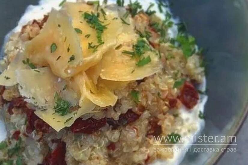 Крупа кіноа, в`ялені томати пармезан, рукола.