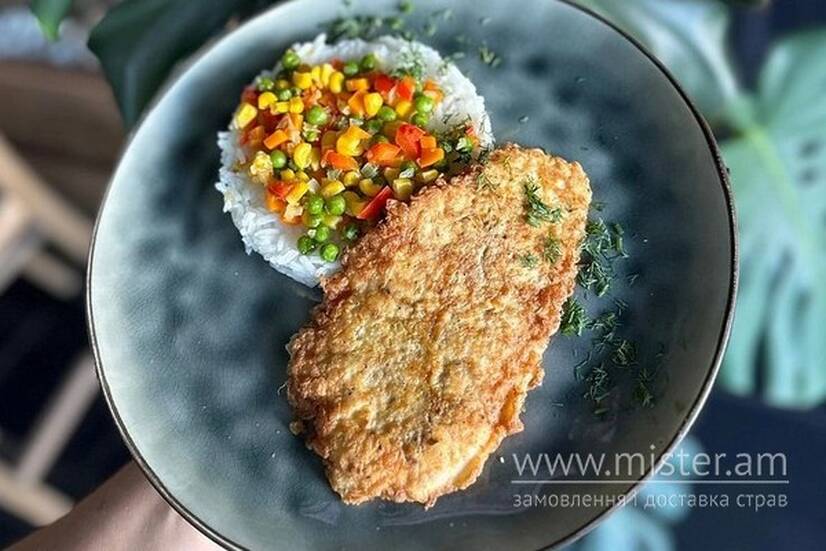 Куряча відбивна з рисом з овочами
