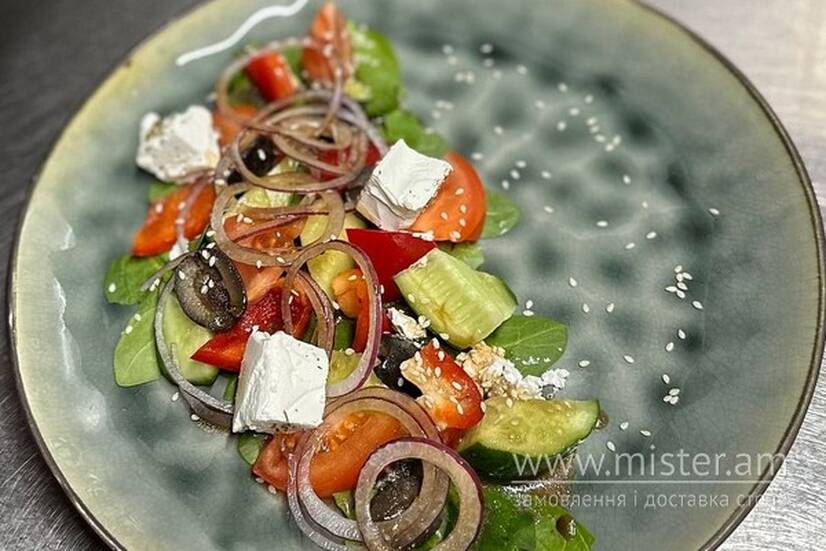 Салат з ростбіфом, в`яленим томатом, вершковим сиром, листям салату та руколою