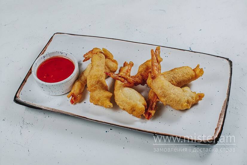 Креветки темпура з соусом полуниця-світ чілі