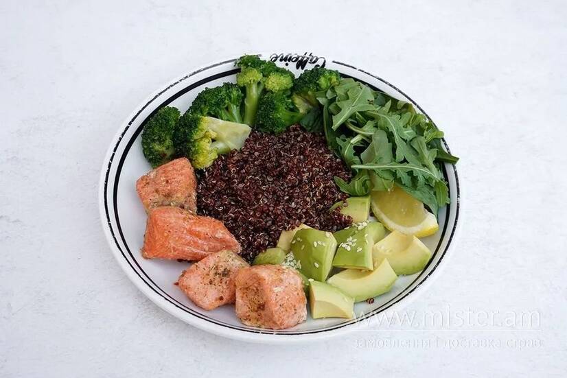 Якщо шукаєш щось легке та поживне - ти його знайшов! Боул з лососем поєднує у собі багато зелені та смаку. Лосось гриль, кіноа, мікс свіжого салату, броколі та авокадо - тут ідеально усе!
