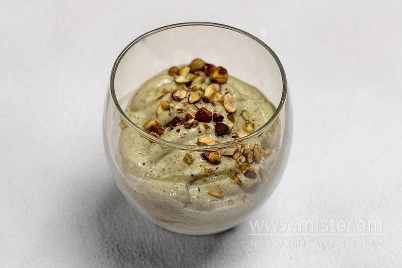 Незвичайний варіант класичного тирамісу з фісташковою пастою та горішками.