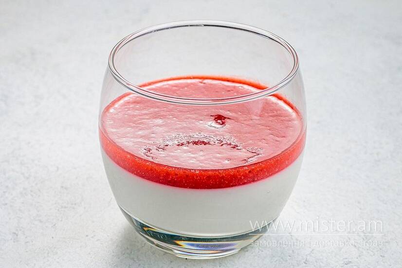 Знаменитий десерт італійської кухні на основі вершків, ванілі та полуничного соусу.