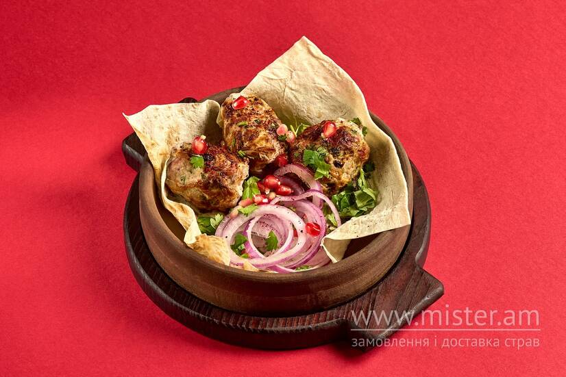 Рублене фермерське м`ясо з барбарисом, кінзою та грузинськими спеціями, запечене у сітці до хрусткої скоринки.