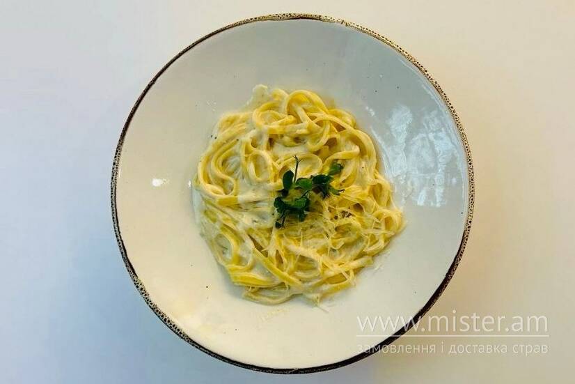 Паста з вершковим соусом на основі чотирьох сирів: пармезан, моцарела, голандський, дорблю.