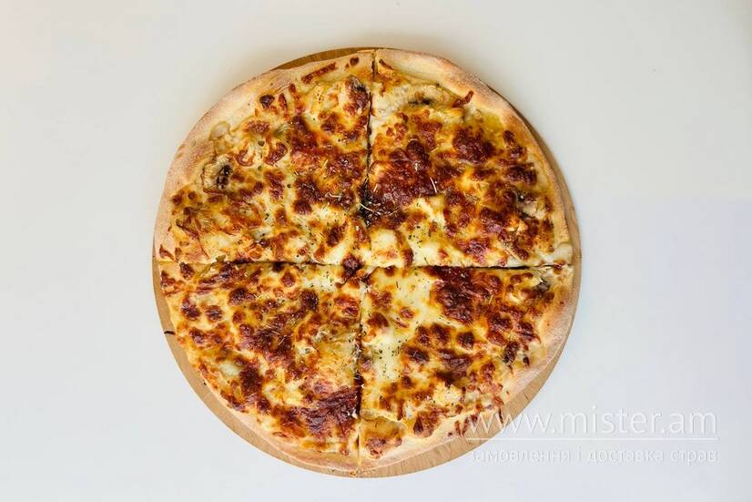 Трішки грибів, трішки курки. Фірмовий грибний соус та 2 виду сира. Смачно. Рекомендуємо.