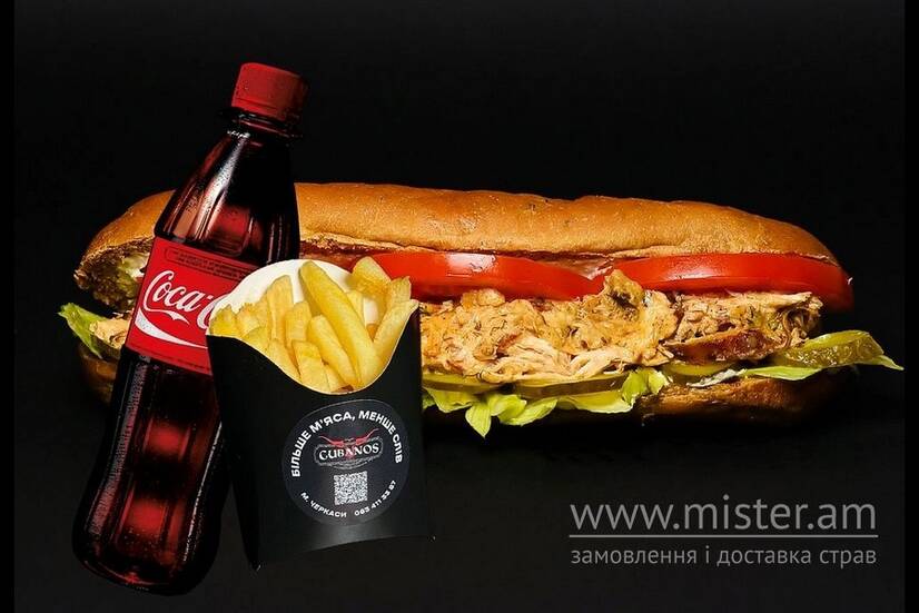 Cubanos з курки + картопля фрі + напій 0,5 л.