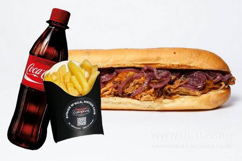 Cubanos зі свинини + картопля фрі + напій 0,5 л.