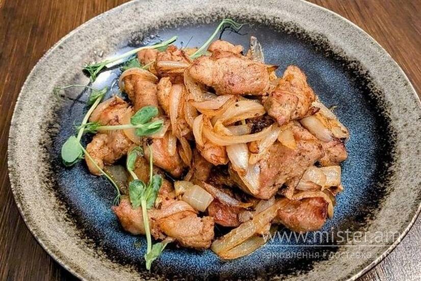 Свинина, цибуля.
