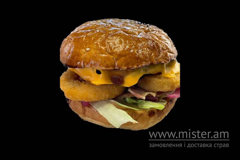 Чізбургер з беконом та цибулевими кільцями