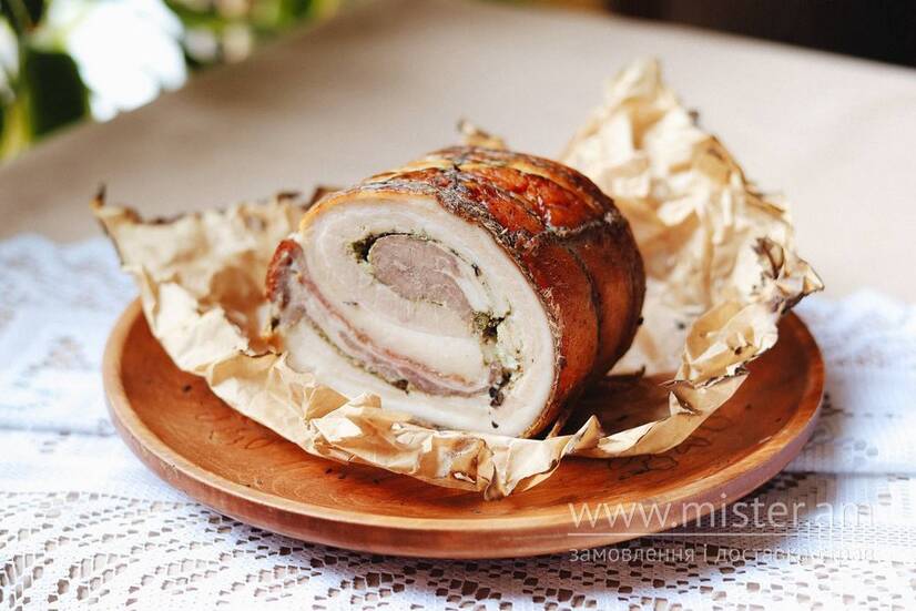 Печений м`ясний рулет з сала