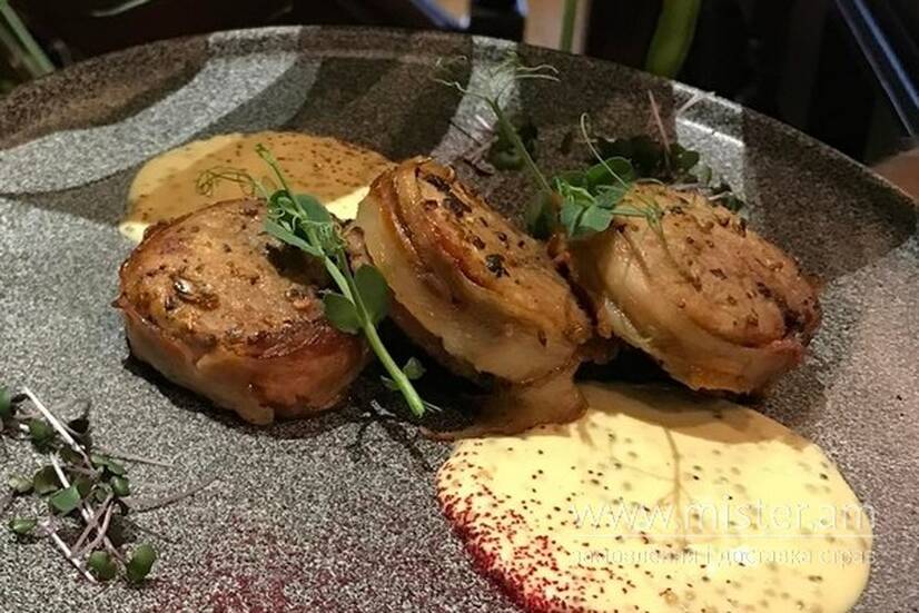 Свинні медальйони в беконі з вершково-гірчичним соусом