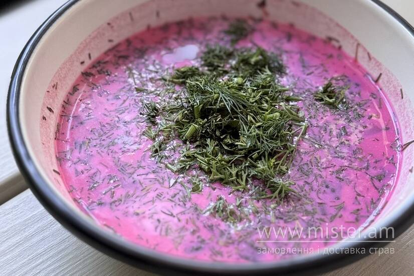 Окрошка з печеним буряком та язиком.