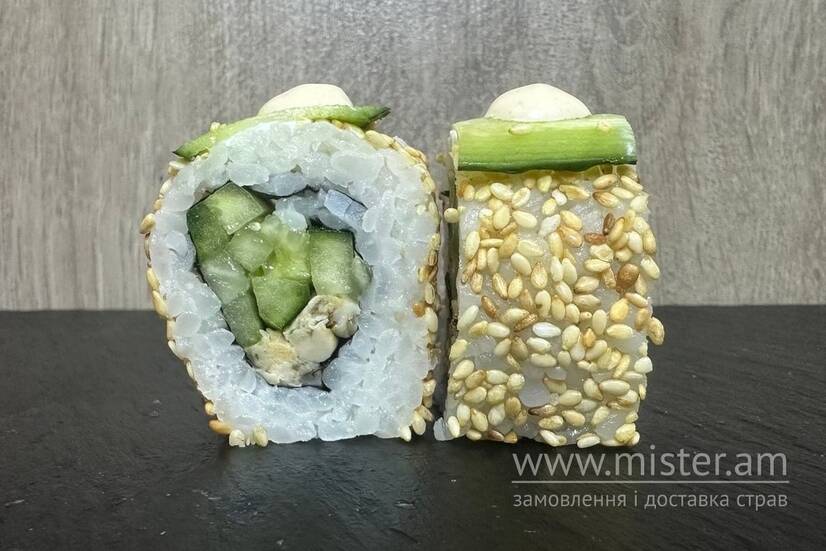 Норі, рис, сир Філадельфія, мідії, огірок, соус спайс.