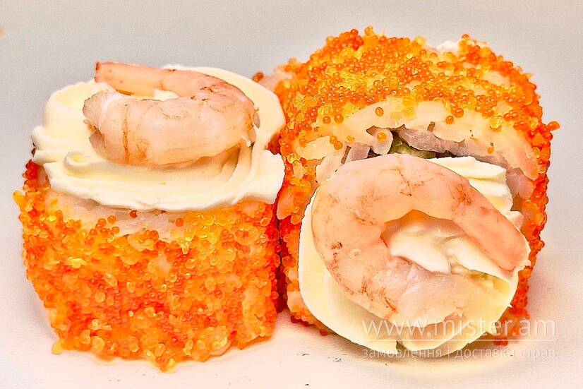 Норі, рис, огірок, сир Філадельфія, креветка, ікра Масаго.