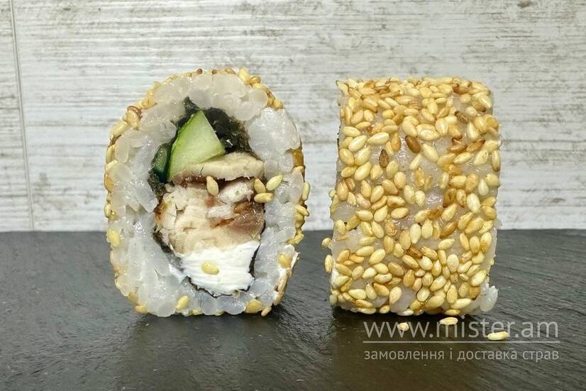 Норі, рис, сир Філадельфія, вугор, огірок, кунжут смажений.