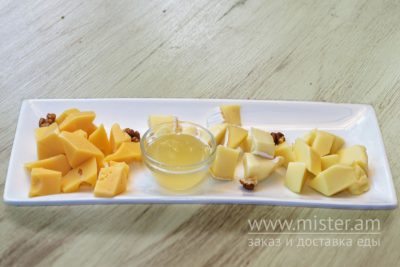 Сир Моцарелла, сир Королівський, сир Брі, грецький горіх, мед.