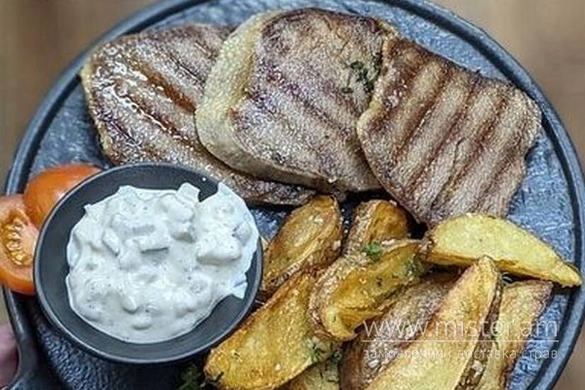 Стейк з язика з картоплею